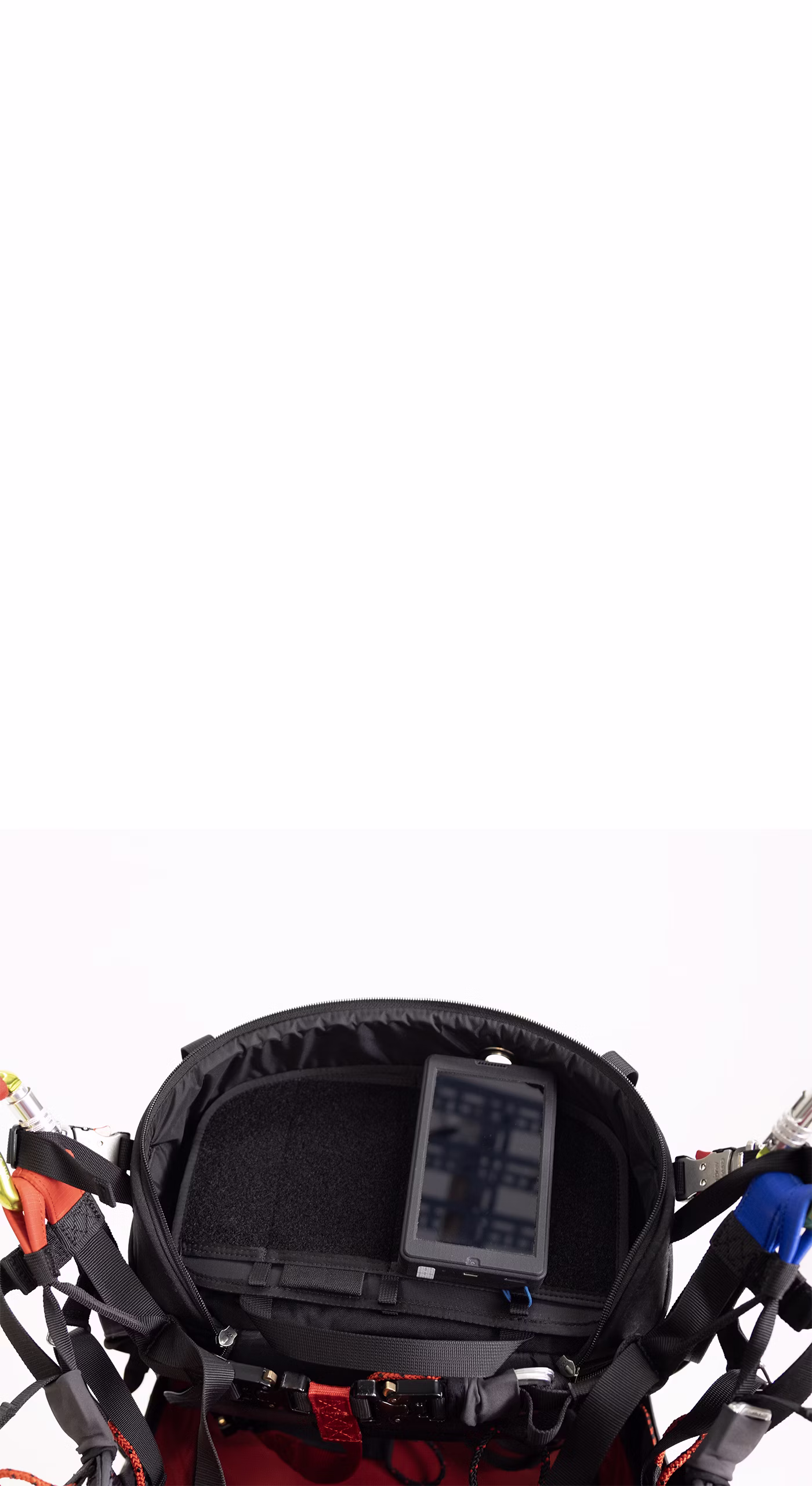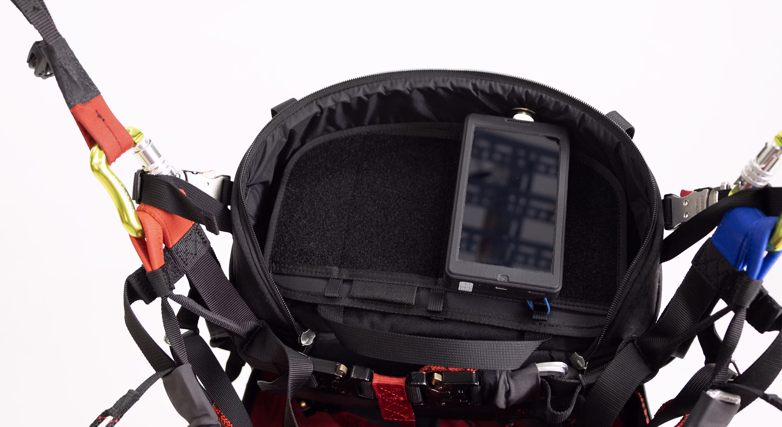 It features a removable and adjustable ballast holder (two sizes, 5 or 10 l), along with a detachable Velcro plate for conveniently carrying your flight instruments to the briefing. Its zip-closing top keeps your instruments protected when not in use, while a handy front mesh pocket provides quick access to essential items.