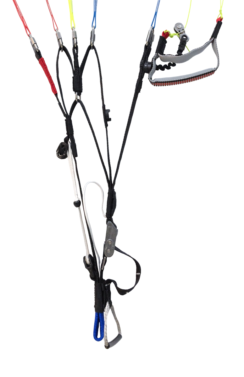 The new Falcon 2 riser features a trim handle, which can be magnetically stowed both above and below the trim buckle. The trimmer is marked in 25% increments and there’s a light stopper. The brake webbing is elasticated and features a Harken pulley for extra smooth operation.