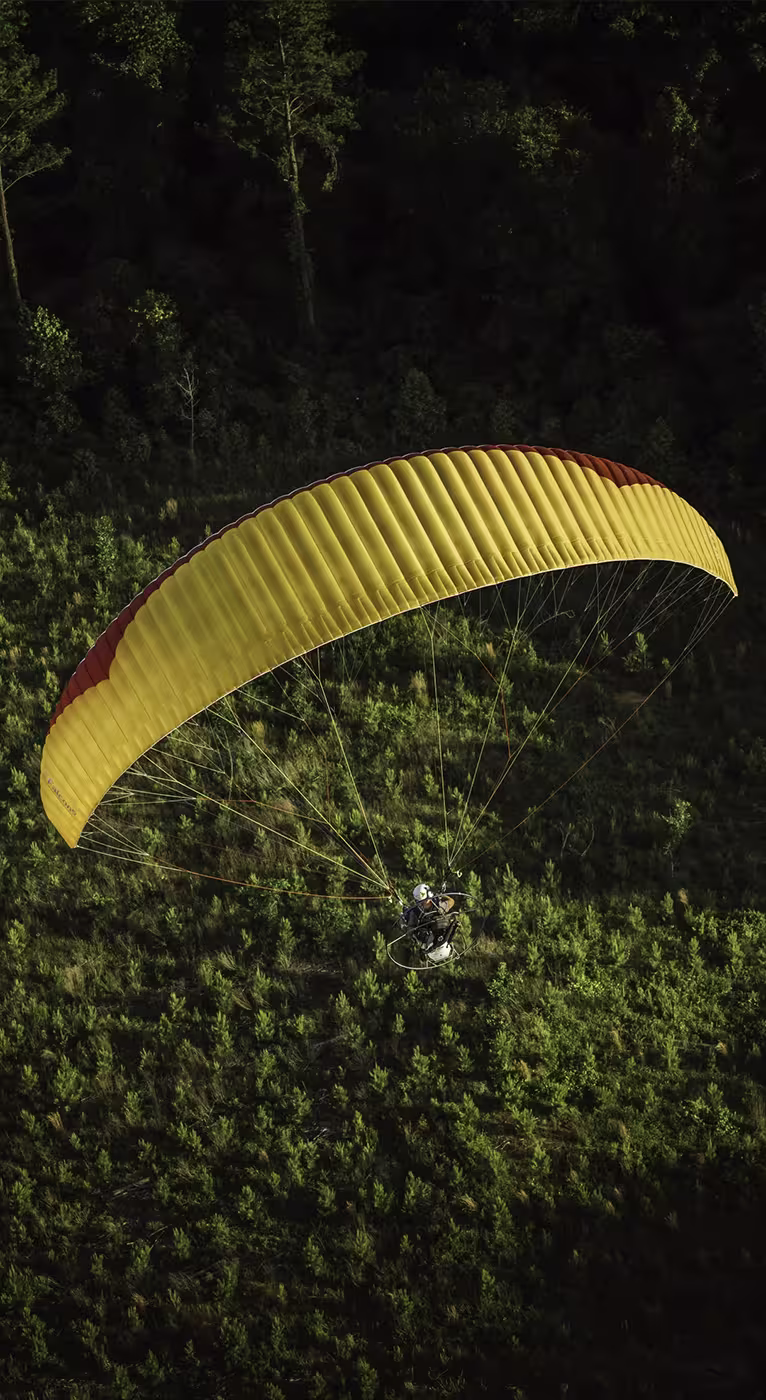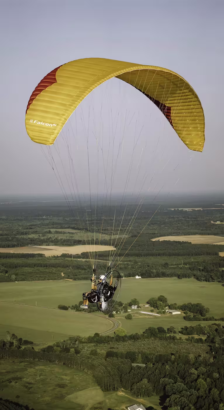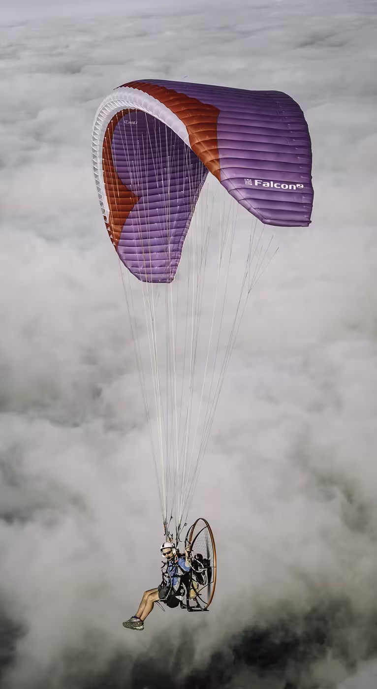 The Falcon 2 is a well-rounded reflex paramotor wing for intermediate pilots. The wing lets you fly dynamically and build your skills in a safe and fun way. The Falcon’s mix of qualities make it a great wing to explore the different aspects of advanced paramotor flight, from fun flying, cross-country, bivouac to competition.